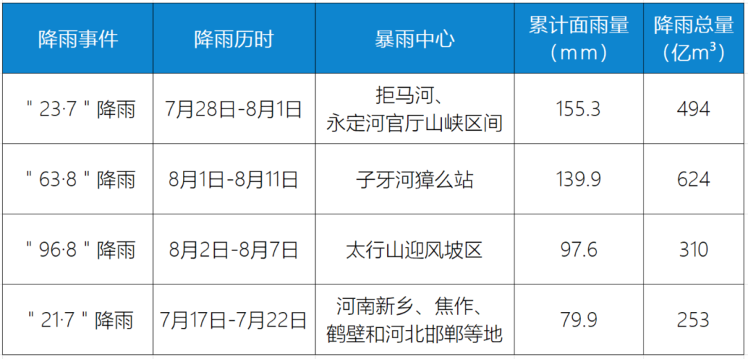 表1 海河23·7流域性特大洪水与历史洪水雨情对比