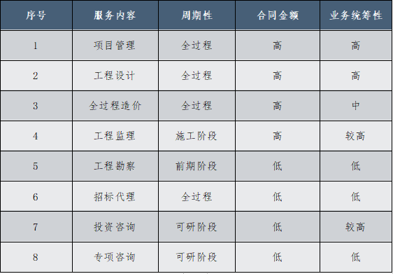 第二,从建设周期来看,全咨项目服务周期较长,牵头单位的服务需要覆盖项目建设全过程,而非阶段性的咨询服务,实现服务周期与项目周期高度匹配,确保工程建设“时间”可控。