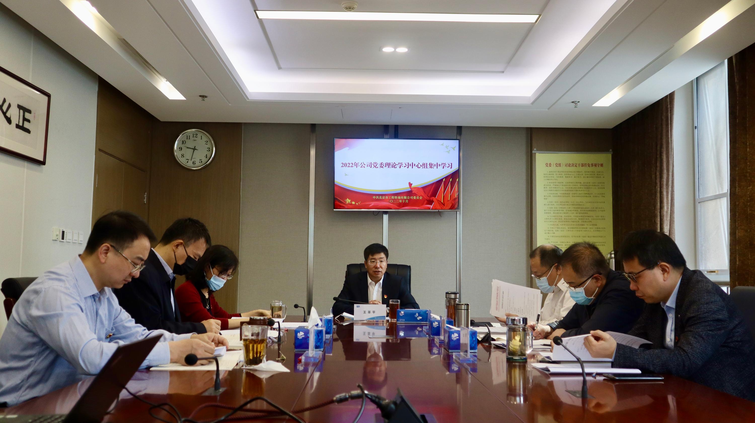 10月20日,公司党委召开理论学习中心组集中学习会议,专题学习党的二十大报告并开展交流研讨。党委副书记、总经理王革平主持会议并讲话,全体领导班子成员参加会议。