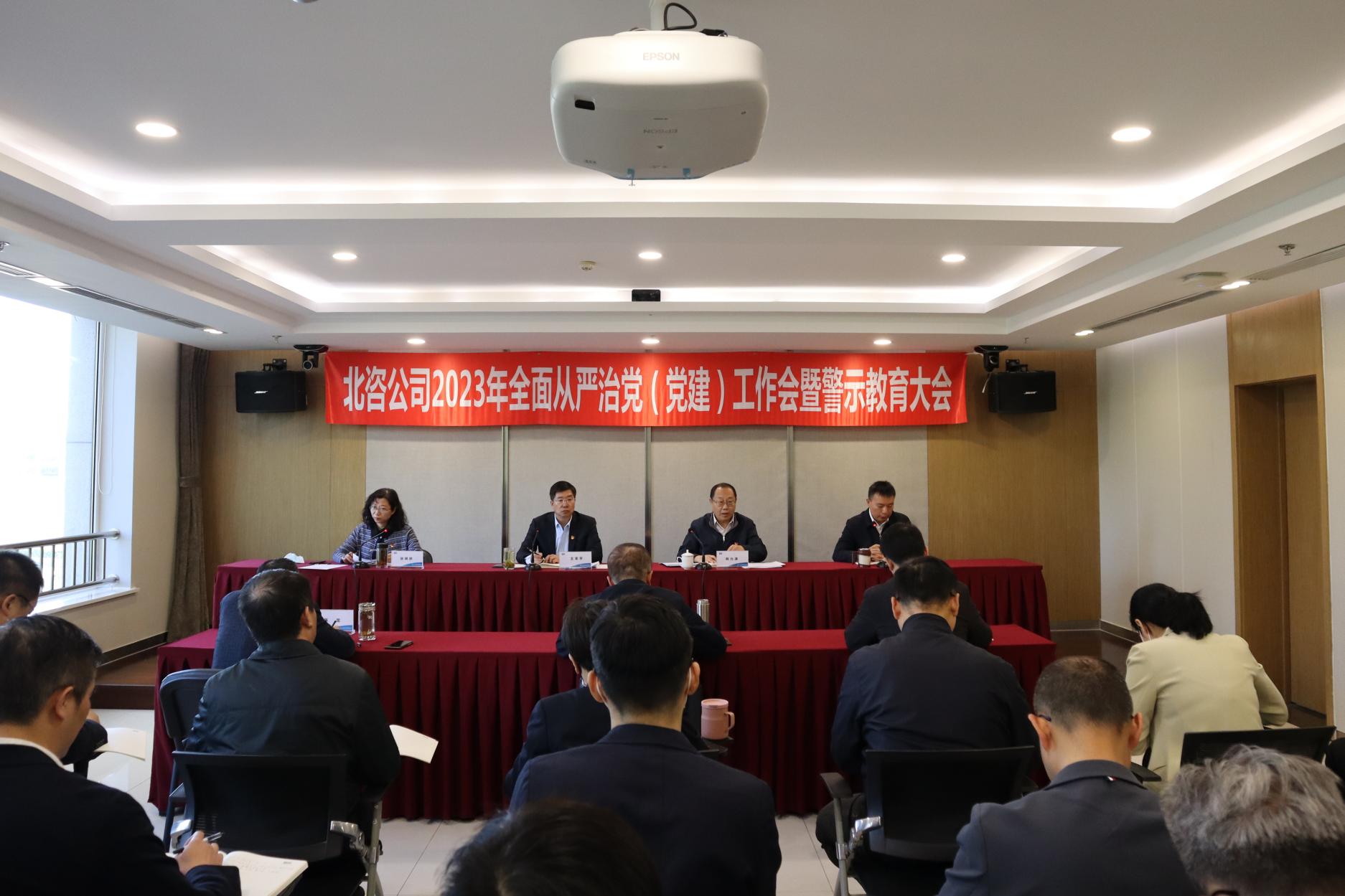 4月7日,北咨公司组织召开2023年全面从严治党(党建)工作会暨警示教育大会,全面传达学习北京国管2023年全面从严治党(党建)工作会暨警示教育大会精神,回顾总结公司2022年全面从严治党及纪检主要工作情况,统筹部署2023年重点工作任务,党委书记、总经理王革平出席会议并总结讲话。他强调,公司要始终坚持和加强党的全面领导,以推进巡察整改为契机,进一步完善全面从严治党体系,进一步推进党建业务融合,充分调动和发挥好各级党组织的战斗堡垒和党员的先锋模范作用,以高质量党建引领公司高质量发展。