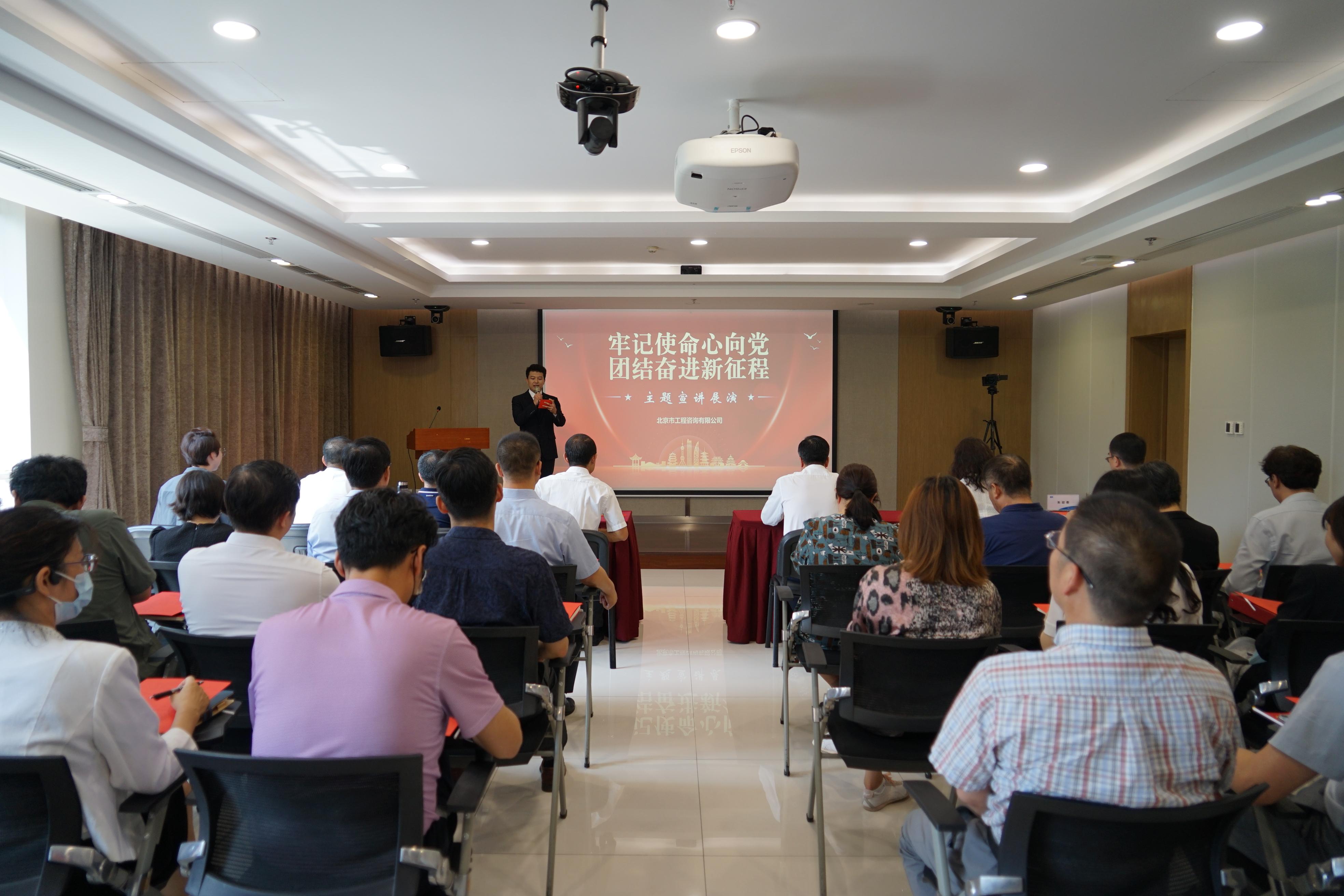 党委副书记张晓妍发表活动开场致辞,强调本次活动旨在通过共同回顾党的光辉历程,弘扬伟大建党精神,激发爱党爱国热情,赓续传承红色血脉,凝聚团结奋进力量,通过先进代表事迹宣讲和“七一”主题节目展演,充分体现公司改革发展实绩,展示一线职工奋斗风采,大力弘扬北咨人的工匠精神、团队精神和创新精神,发挥榜样示范引领作用,激励全体党员干部职工坚定理想信念,以更加昂扬的斗志奋进新征程、建功新时代,努力开创公司高质量发展新局面,以“智库”力量更好服务新时代首都发展。