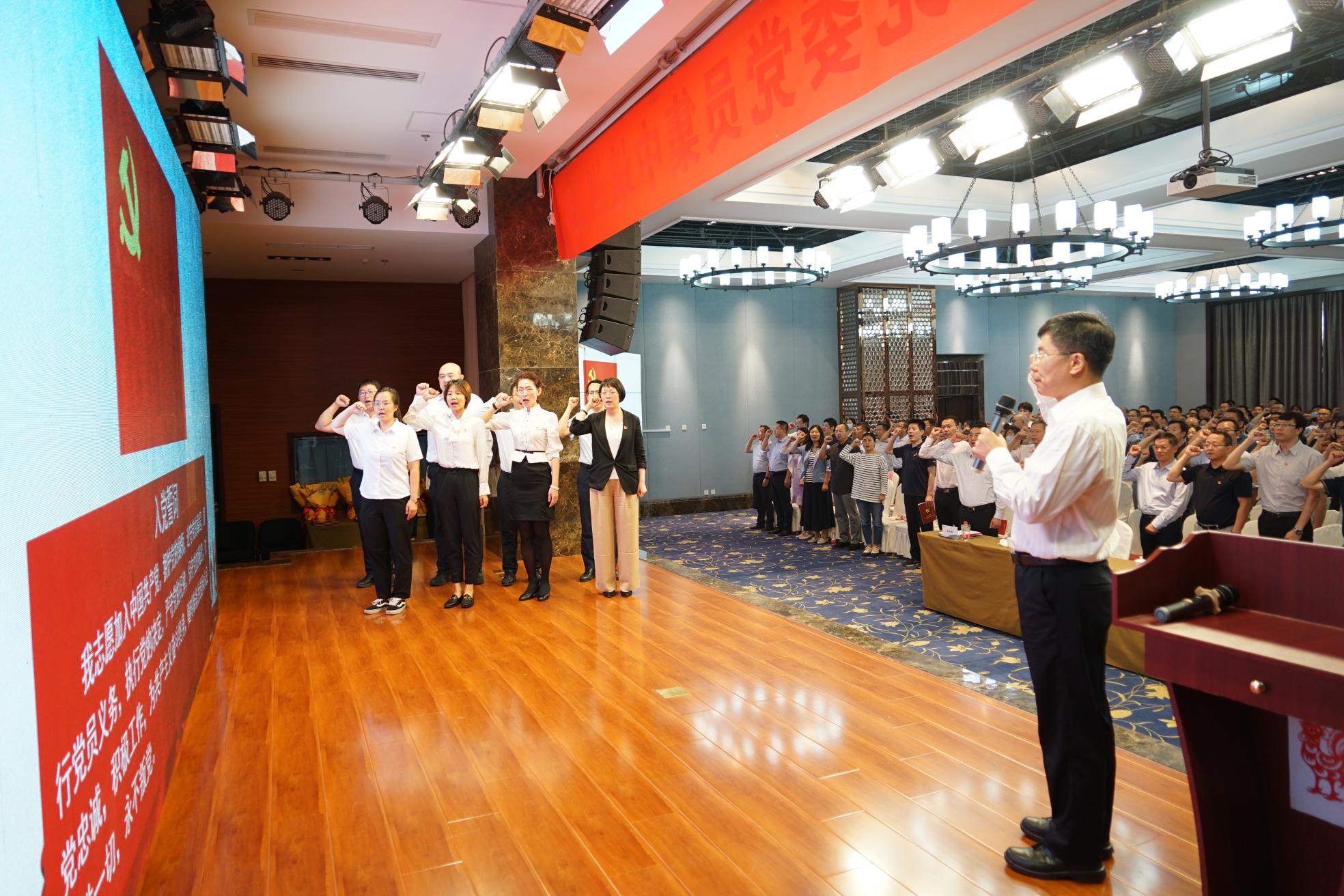 本次纪念表彰活动与党员集中培训开班仪式结合开展,活动由集体重温入党誓词开始,在王革平领誓下,新党员代表和参会党员共同面向党旗,庄严宣誓。