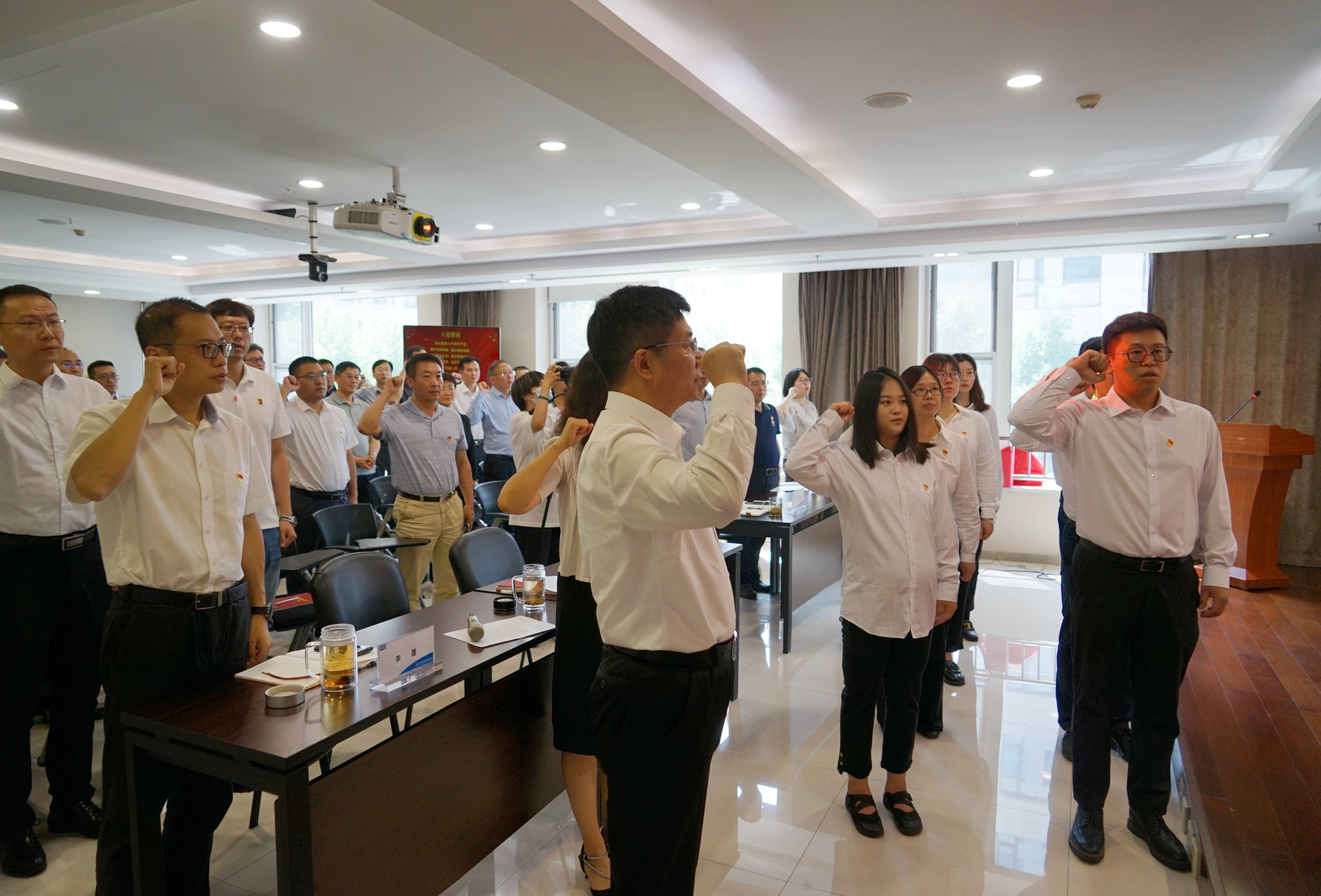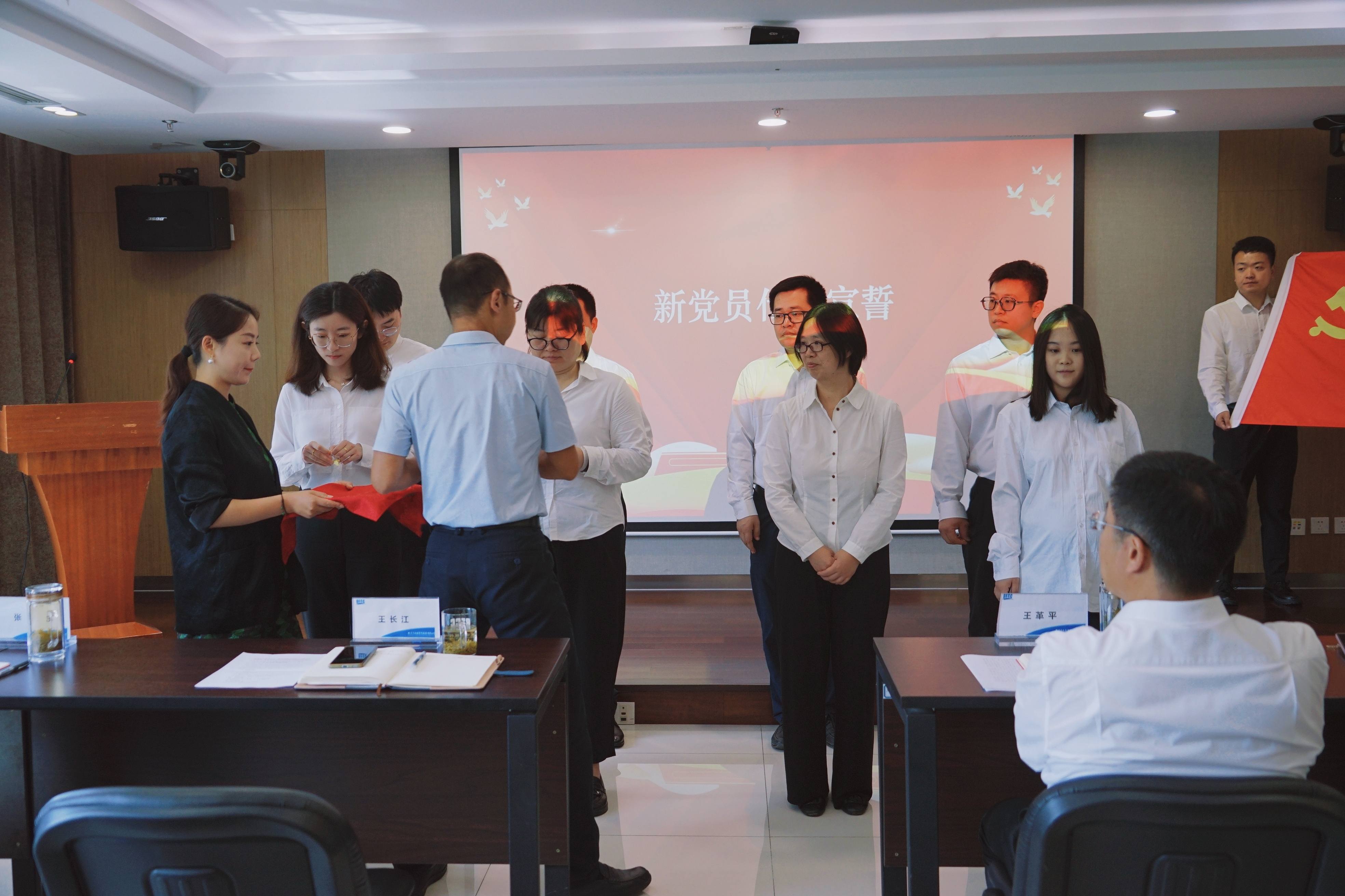 党员宣誓环节,公司8名新发展党员代表迈着坚定的步伐走上台前,公司党委副书记、董事、总经理王长江向其授予党员徽章。闪耀在胸前的那一抹红色不仅是党员身份的标志,更是一种责任与担当的象征。