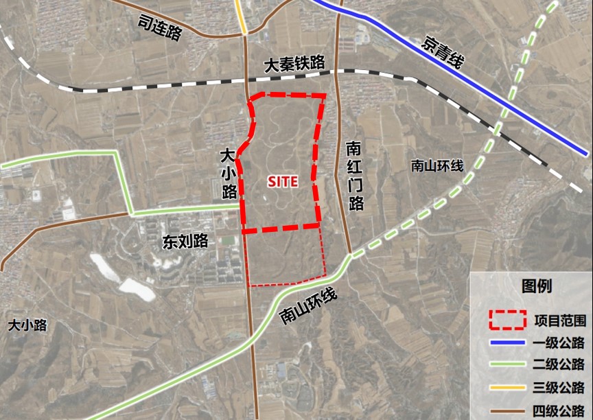 3.项目建设地点:位于延庆新城东南部地区,0410街区东侧地块,具体四至范围:西至现状北京科技职业学院(八达岭校区)东边界、东至Y610路西边界,北至大秦铁路南侧,南至南山环线北侧(见附图)。
