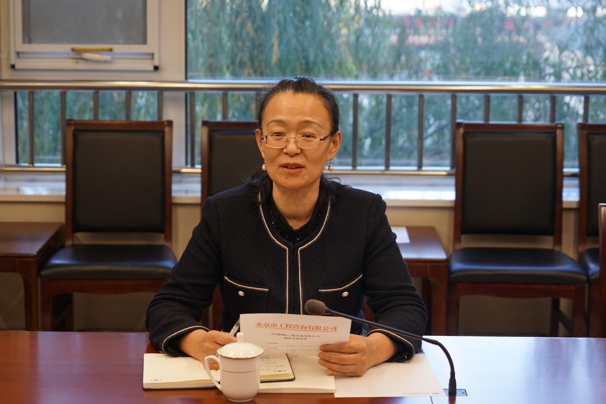11月4日,中国国际工程咨询有限公司(以下简称中咨公司)党委委员、总会计师、董事会秘书王丽静、总经济师李开孟一行到访公司,就公司业务建设、运营管理以及改制上市进展情况等相关内容进行了交流座谈。公司党委副书记、总经理王革平主持会议。