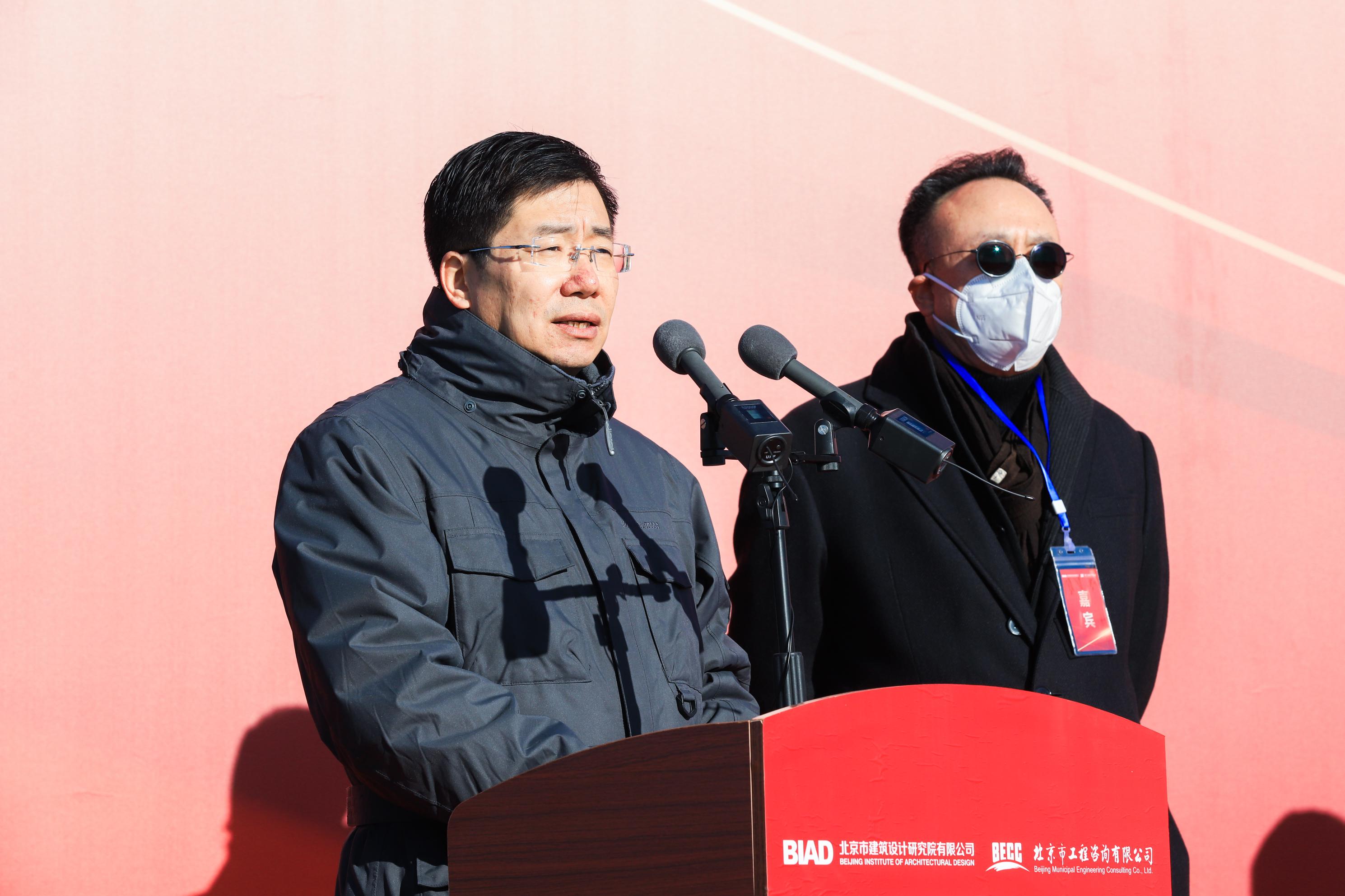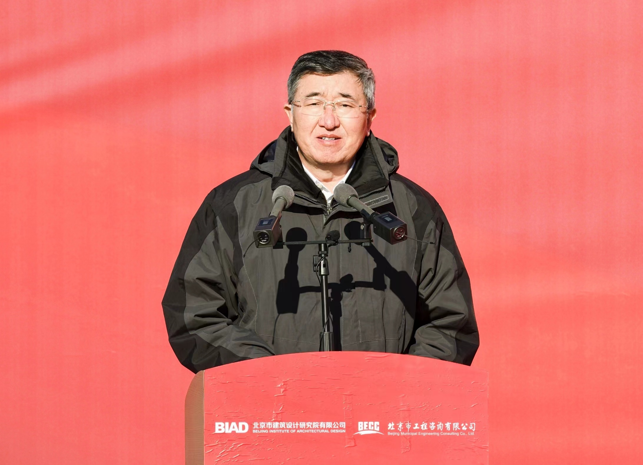 在开工仪式中,北咨公司党委副书记、总经理王革平,北京建院党委书记、董事长徐全胜依次致辞,北京建院党委副书记、总经理张宇主持活动。北京市副市长、市委城市副中心工委书记、副中心管委会主任隋振江宣布环球建筑科创中心暨北京建院、北咨公司总部项目正式开工,随后众领导为开工项目奠基培土。