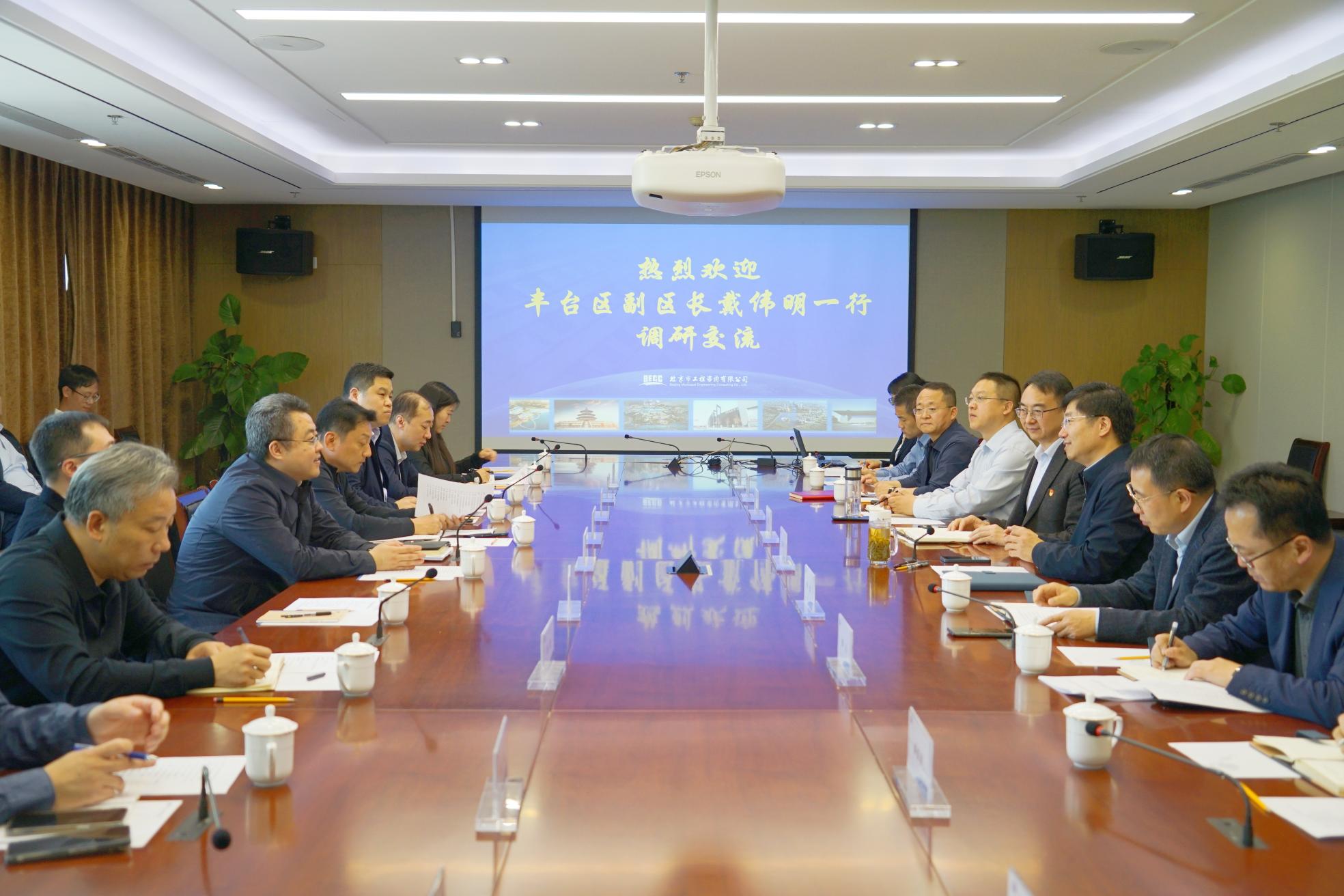 戴伟明副区长对北咨公司长期以来为丰台区建设和经济发展所做贡献表示感谢,对于近年来在政府工作协同配合、重大项目谋划、项目建设管理等领域取得的工作成效及专业性表示肯定。他指出,丰台区自然资源禀赋优良,经济运行形势良好,具备有利的发展条件。希望北咨公司加大智库建设力度,作为丰台区高质量发展智库单位进一步深化合作,全力以赴助力丰台区发展。发挥公司在发展规划、产业研究、项目建设方面的咨询优势,继续加大对丰台河东河西均衡发展工作的智力支持,积极参与到河西地区发展中来,从信息、政策、项目和管理等维度做好与丰台区的协同配合。