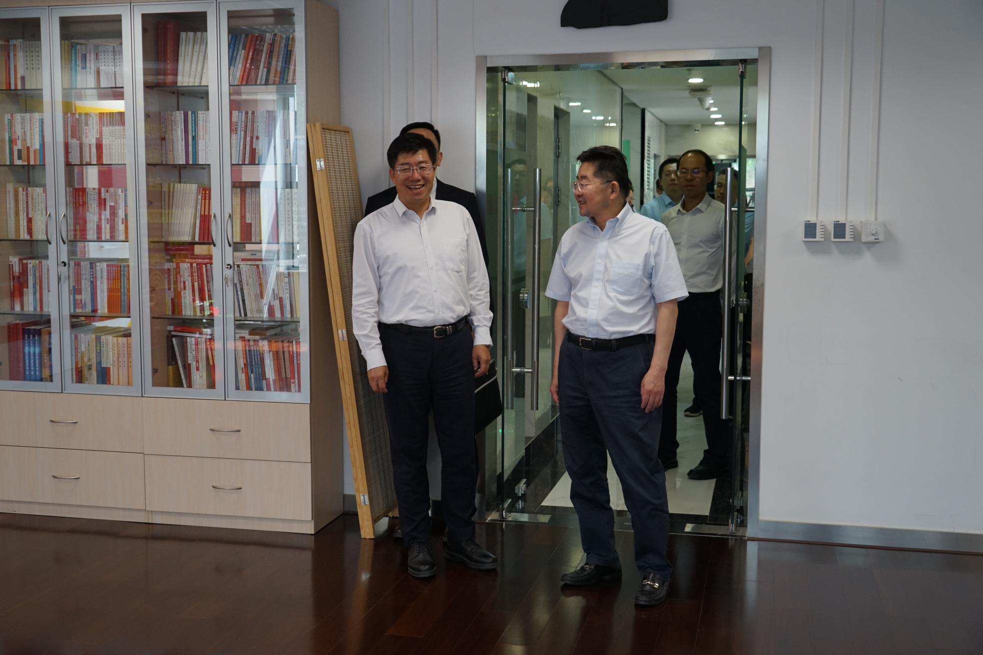 在调研会议前,郭川总经理视察了公司党建活动室、健身活动室及职工食堂,对公司关心员工身心健康的各项举措给予高度评价。调研中,公司党委书记、董事长王革平全面汇报了公司历史沿革、业务发展、内控管理以及新总部建设等方面情况,详细介绍了公司多年来在做强高端智库、打造行业龙头企业、推进企业创新升级等领域取得的突出成效。