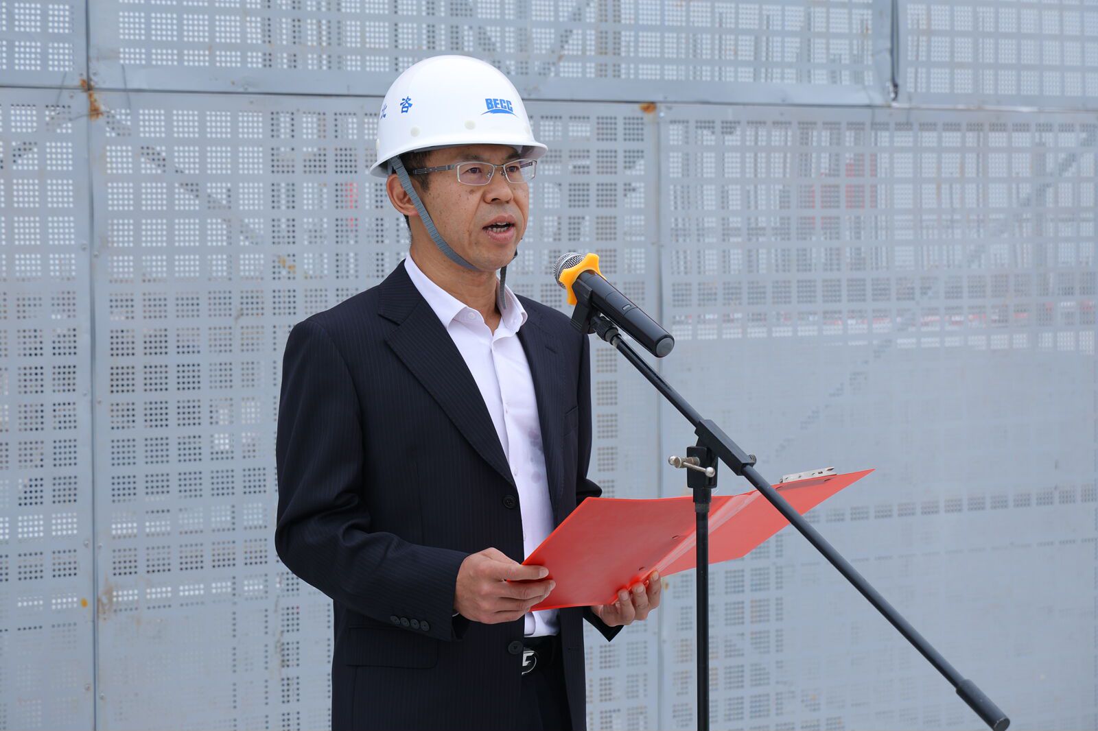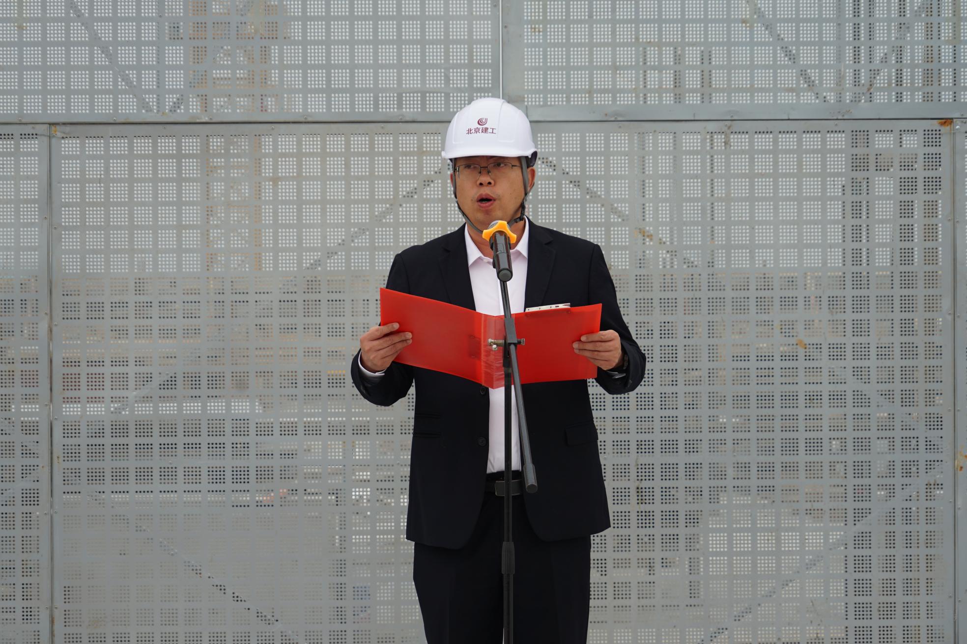 王长江代表北咨公司欢迎各位领导来宾,向付出辛勤努力的建设者们表示诚挚感谢,特别感谢市委市政府、城市副中心党工委、通州区委区政府、市国资委、北京国管及相关政府主管部门一直以来对北咨大厦项目的关心和支持。他表示,北咨大厦项目主体结构封顶,标志着项目建设迈入新阶段,大厦的二次结构施工、内部装修、设备安装等环节将陆续开展,希望各方建设者们认真履行职责,科学组织管理,将北咨大厦建设成为一座品质卓越、经得起历史检验的精品工程,为城市副中心高质量发展积极贡献力量。
