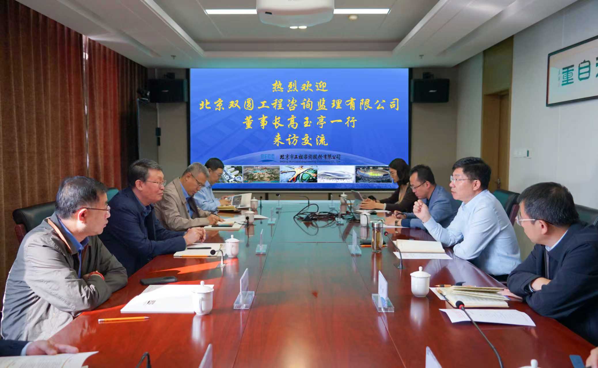 双圆监理公司总经理王远,副总经理陈滨、李向东,北咨公司党委委员、副总经理张龙及双方相关人员参加交流。