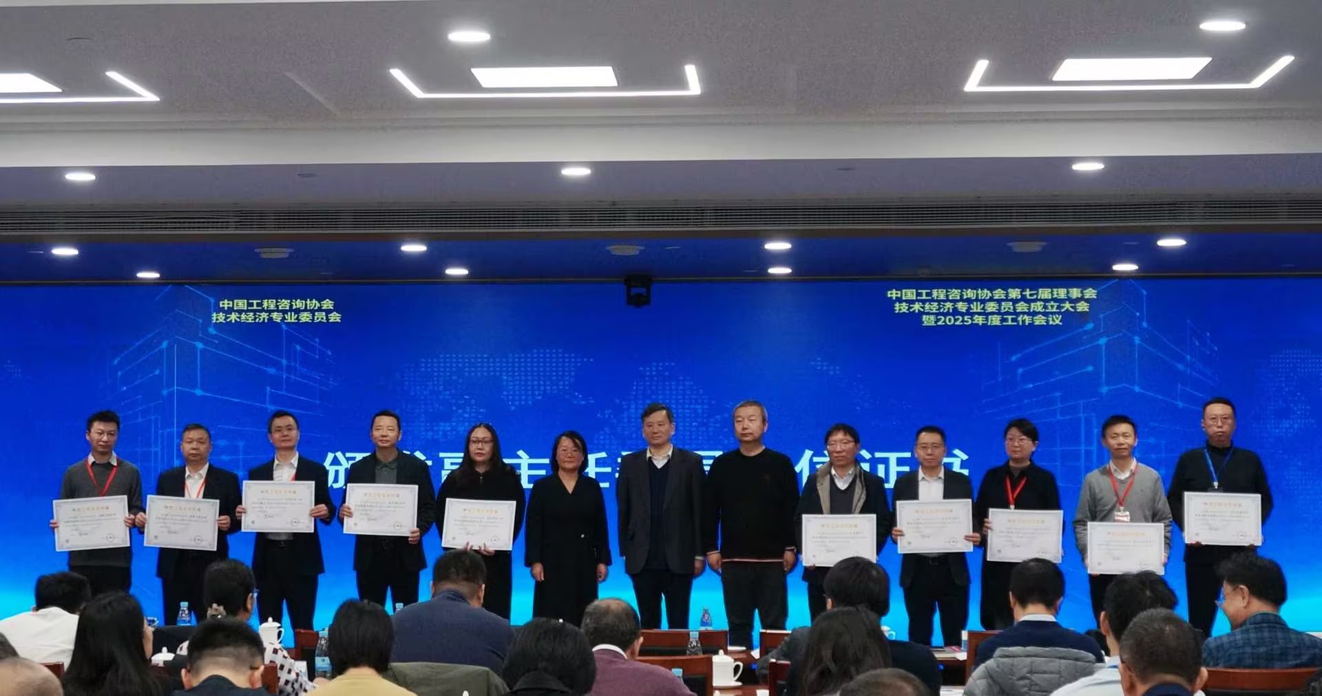 大会通报了中国工程咨询协会技术经济专业委员会的筹备及成立情况,中咨协会与技术经济专委会领导共同为副主任委员单位颁发证书。本次大会以“技术经济如何赋能有效投资”为主题,邀请嘉宾分享交流经验,探讨技术经济论证的重要意义、对有效投资的价值及经济社会发展的贡献,研判其未来价值走向与创新方向。来自全国50家咨询单位的代表参加会议。