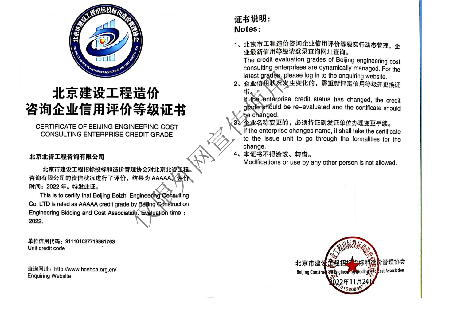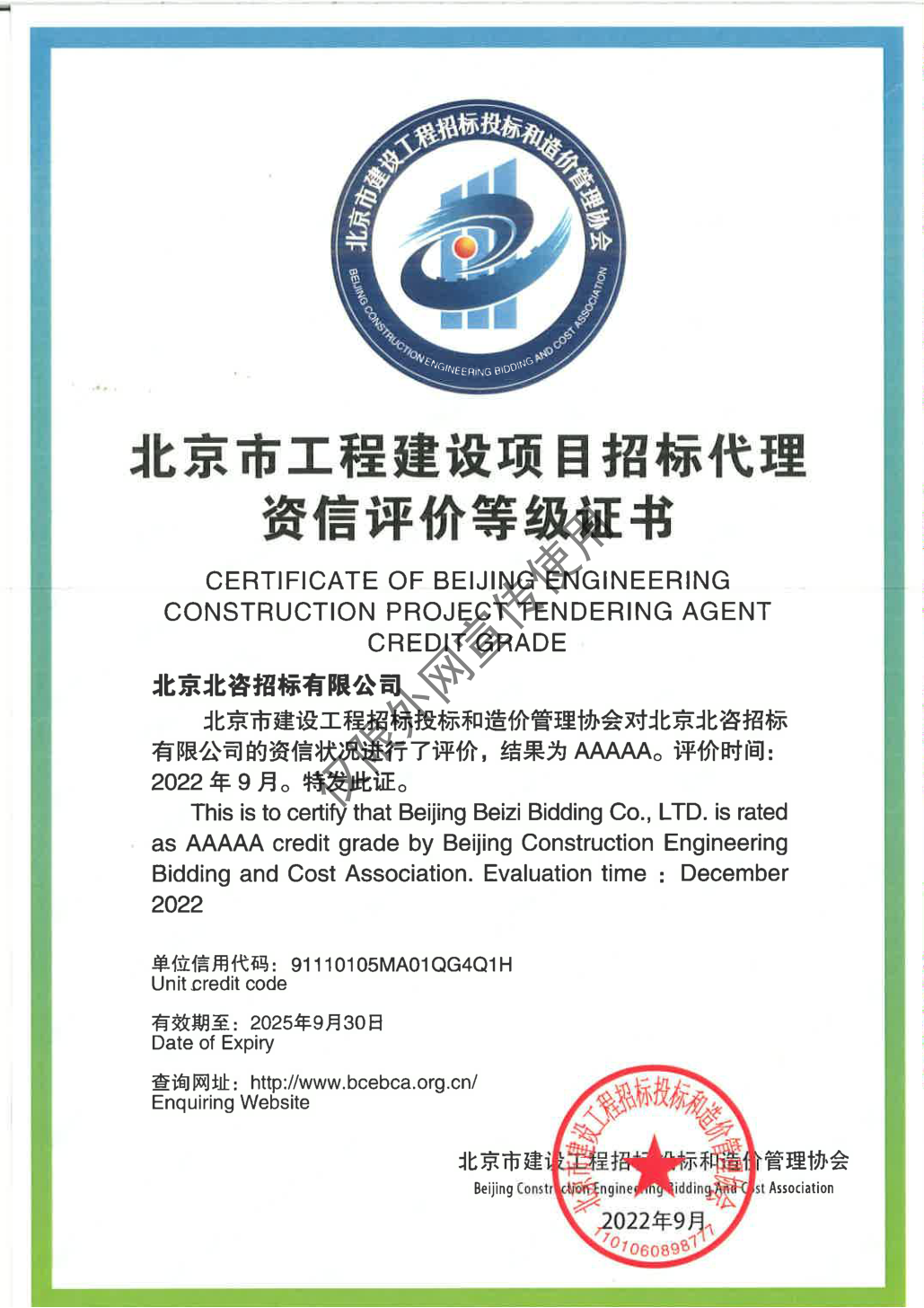 | 7 | 北京市工程建设项目招标代理资信评价等级证书 | 8 | 北京建设工程造价咨询企业信用评价等级证书 |
