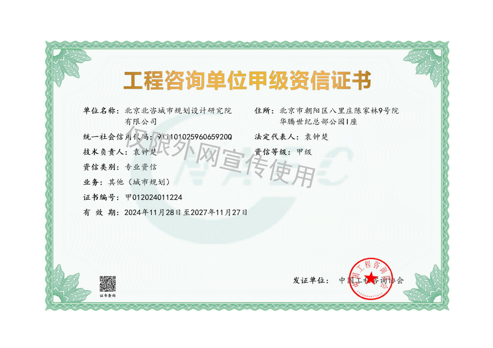| 21 | 工程咨询单位甲级资信-政府和社会资本合作(PPP)咨询 |