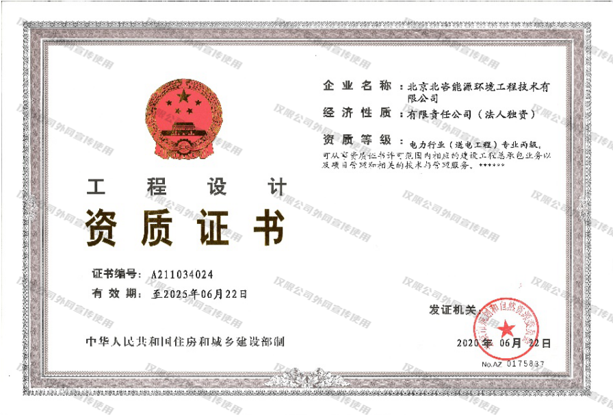 | 11 | 环境管理体系认证证书 | 12 | 工程设计资质证书-电力行业专业丙级 |