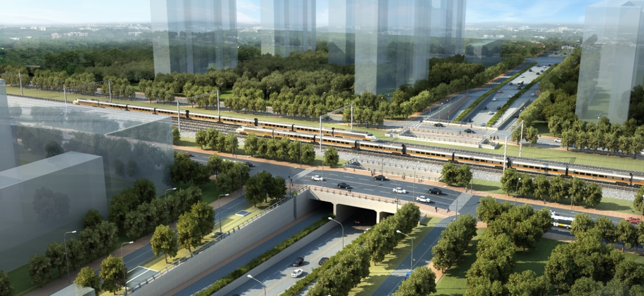 该项目道路沿线分布着多个住宅小区、酒店及办公场所,交通流量大;工地覆盖三个街道辖区,对环保、文明施工要求高,扰民及民扰情况较多;施工场地狭窄,开挖深度达16米,施工困难;地上、地下障碍物较多,涉及电信、污水管线、雨水管线、给水管线、路灯杆、监控等,需与多家产权单位进行协调拆改。此外,施工需下穿京包铁路立交,现状铁路形成天然屏障,东西两侧场地施工资源组织调配难度大,铁路以西路段需分时、分段、多次交通导改以满足市民交通出行,工序转换频繁,劳动力、资源协调难度大。工程工序复杂,环环相扣,需合理协调施工部署才能保证既定工期。