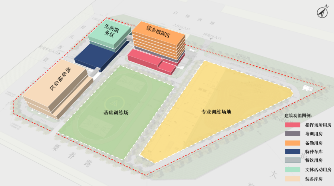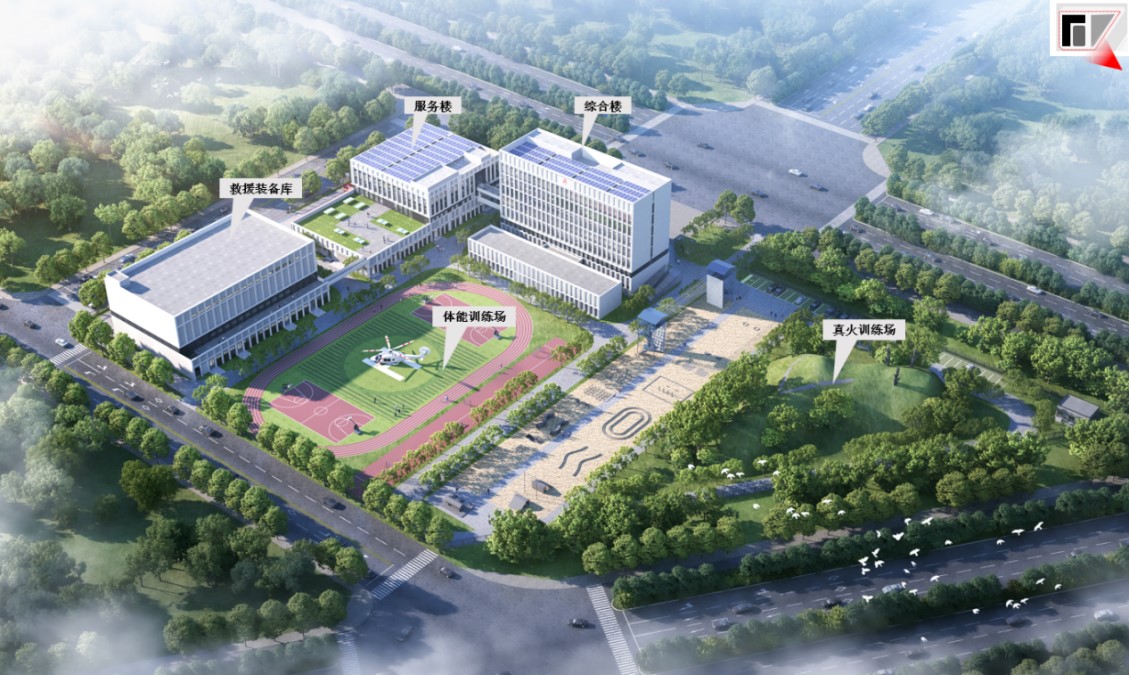 该项目位于北京市房山区良乡大学城西拓展区,总建筑面积2.25万平方米,建设内容包括综合楼、服务楼、装备储备库、训练场地、直升机停机坪等。