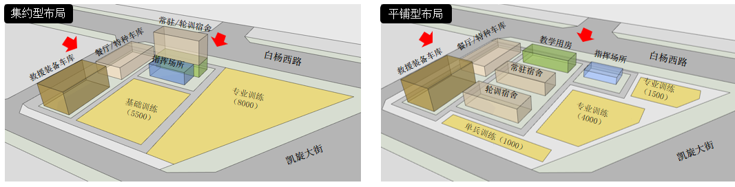 面对与同级别项目相比建设用地指标严重不足的挑战,北咨设计院迅速行动,通过现场踏勘、走访调研,全面细致地梳理建设需求。团队秉承“创新、共享、绿色、经济”的理念,对多种布局模式进行了反复比选,从分散式组团到线性序列,从水平展开到立体叠置,最终确定了“集约型高密度”方案,即将“剖面”作为第一设计界面,以立体空间开发替代传统平面扩张,通过“地面—空中—地下”三维复合布局,将指挥、救援、训练等功能垂直优化组合。这一创新设计不仅满足了全部功能需求,还将训练场地容量提升117%,实现了“零用地增量”下的价值最大化,为项目建设开辟了新路径。